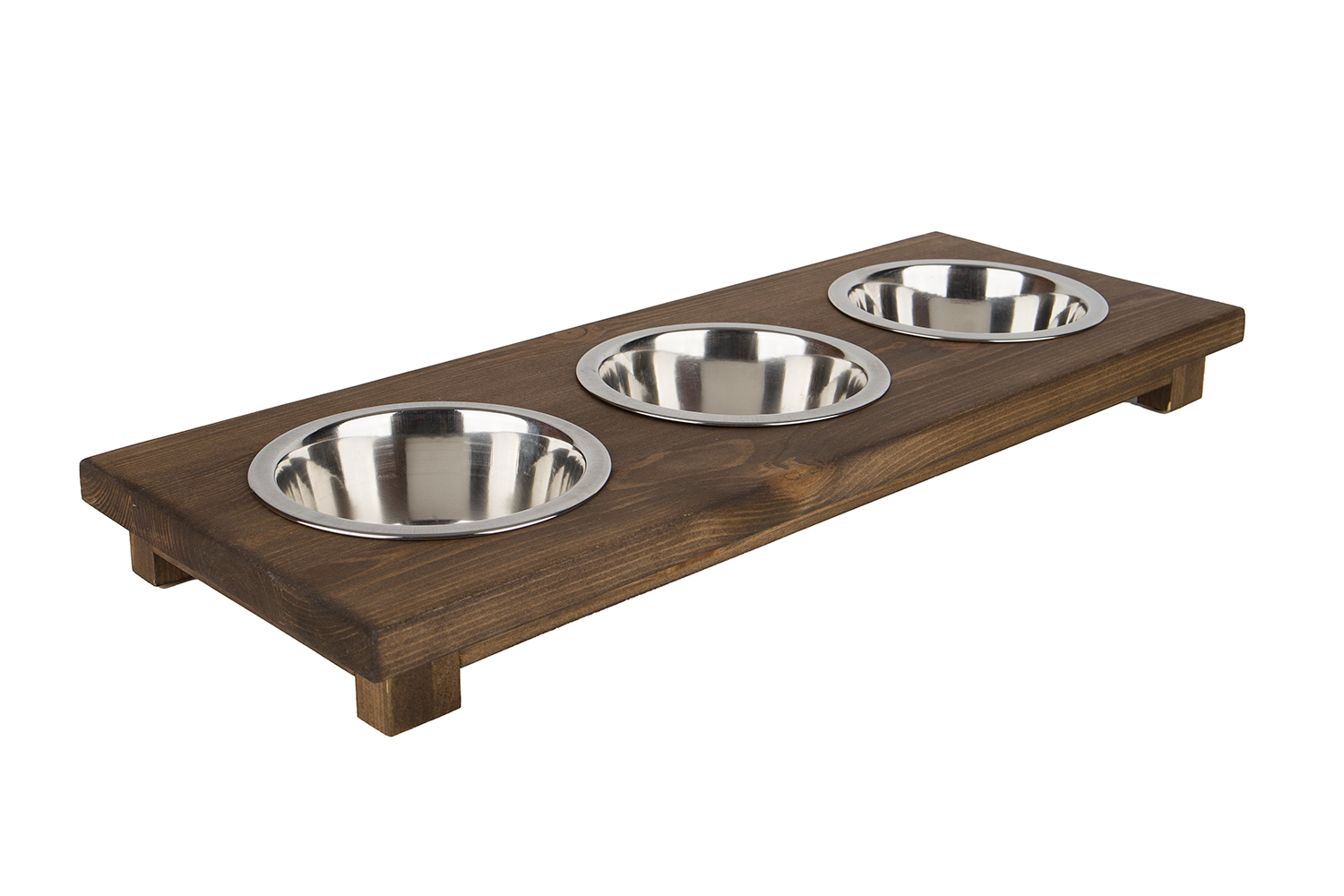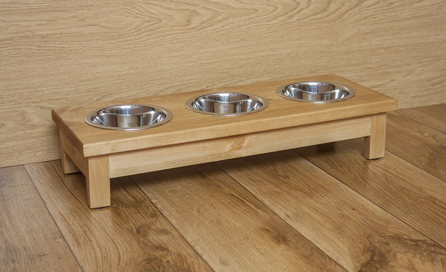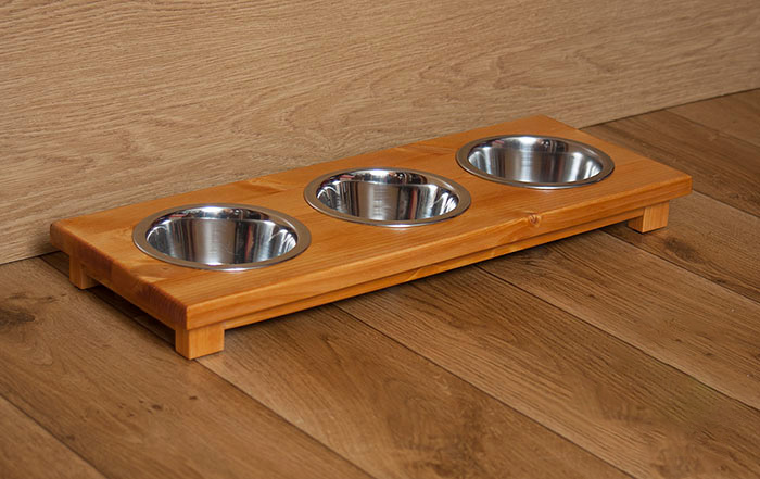 🐾 Drewniany stojak z trzema miskami – rozmiar S